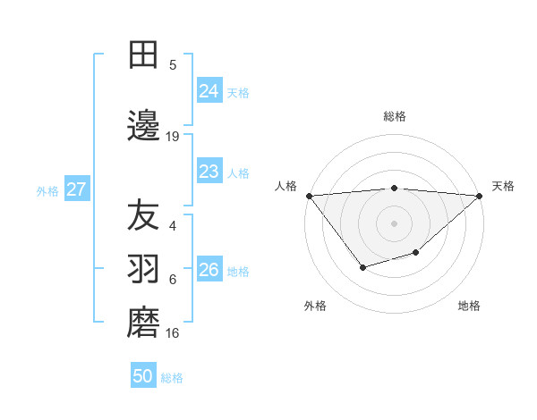 田邊 友羽磨さんを姓名の画数から五運を鑑定