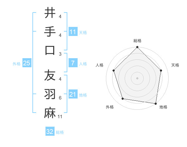 井手口 友羽麻さんを姓名の画数から五運を鑑定