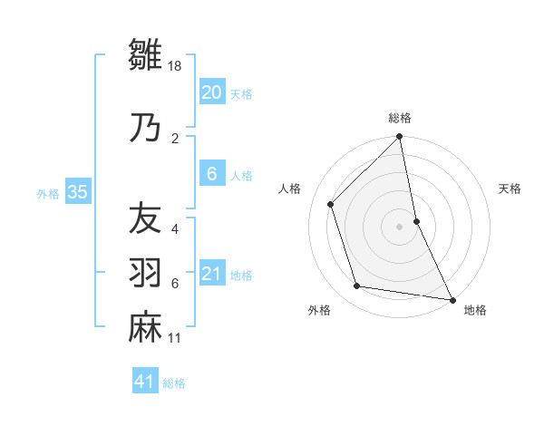 雛乃 友羽麻さんを姓名の画数から五運を鑑定