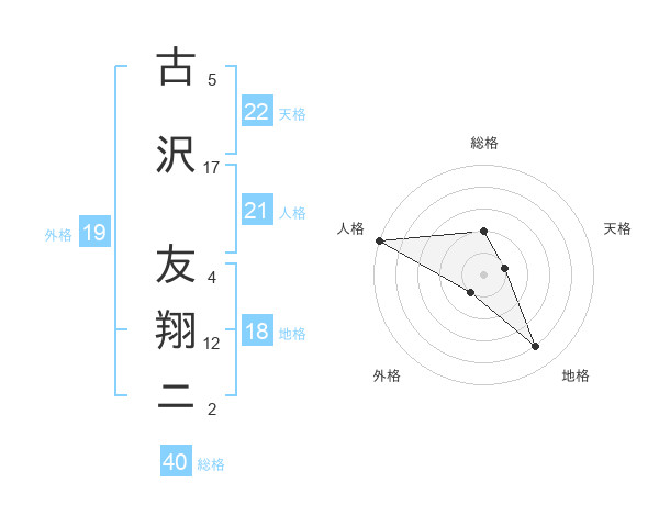 古沢 友翔ニさんの天格は22画の1点!