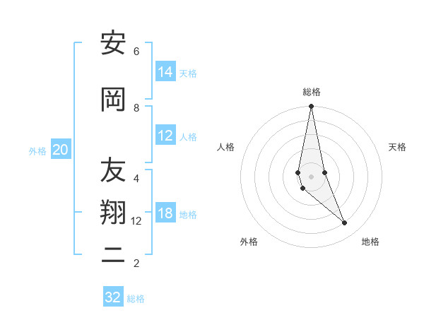 安岡 友翔ニさんを姓名の画数から五運を鑑定