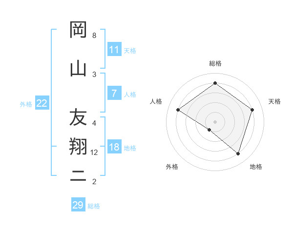 岡山 友翔ニさんを姓名の画数から五運を鑑定