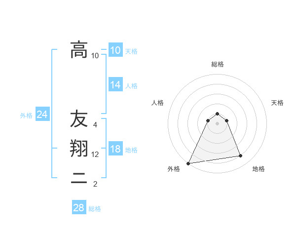 高 友翔ニさんの総格は28画の1点!