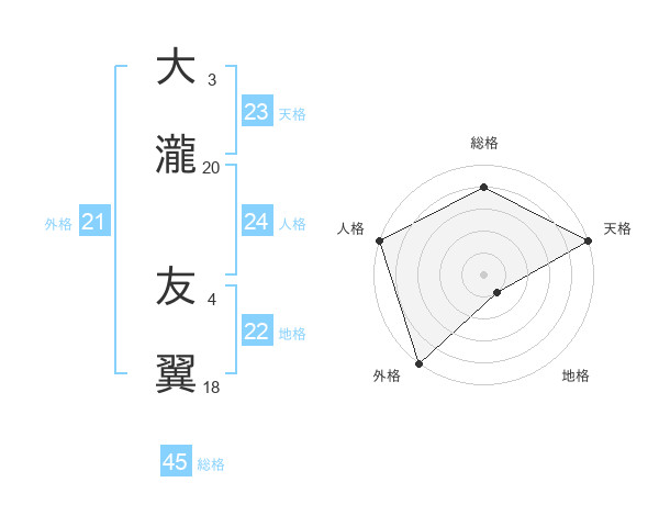 大瀧 友翼さんを姓名の画数から五運を鑑定