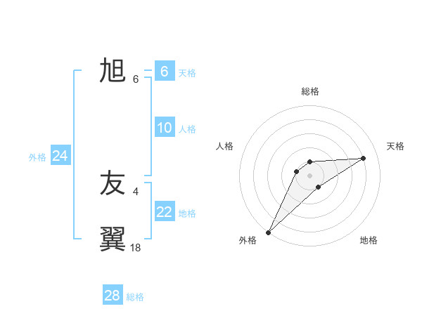 旭 友翼さんの総格は28画の1点!