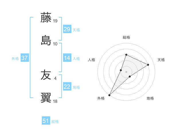 藤島 友翼さんを姓名の画数から五運を鑑定
