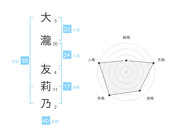 大瀧 友莉乃さんを姓名の画数から五運を鑑定