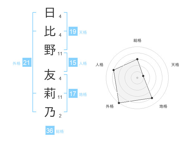 日比野 友莉乃さんを姓名の画数から五運を鑑定