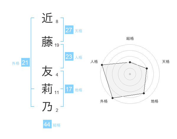 近藤 友莉乃さんを姓名の画数から五運を鑑定