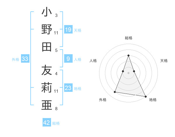 小野田 友莉亜さんを姓名の画数から五運を鑑定