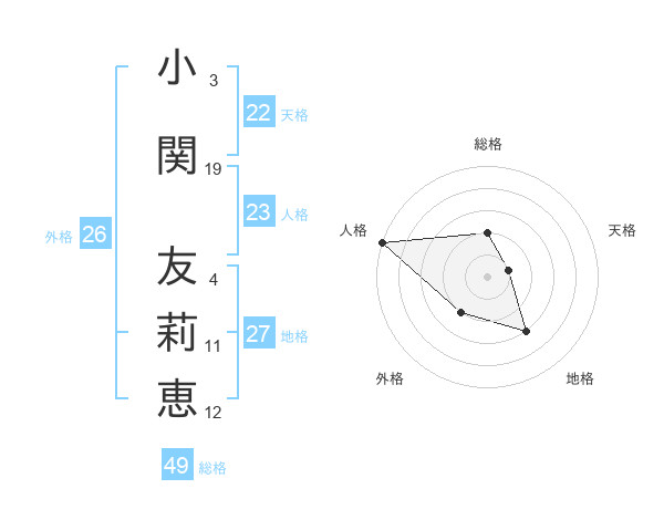 小関 友莉恵さんを姓名の画数から五運を鑑定