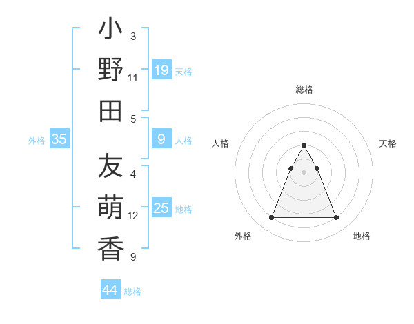小野田 友萌香さんの総格は44画の2点!