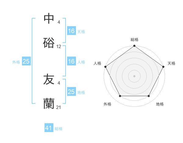 中硲 友蘭さんを姓名の画数から五運を鑑定