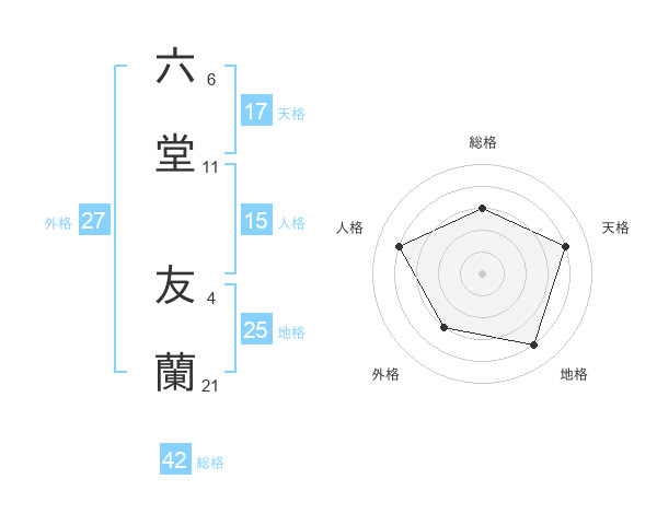 六堂 友蘭さんの天格は17画の4点!