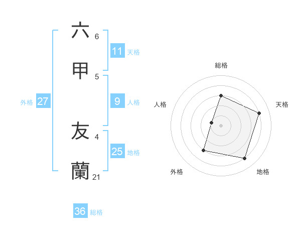 六甲 友蘭さんの総格は36画の3点!