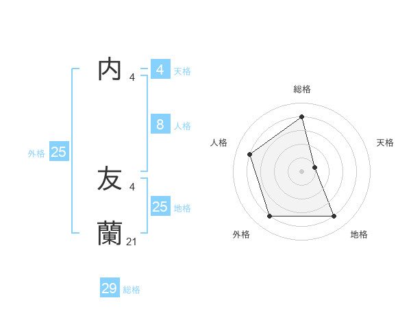 内 友蘭さんの外格は25画の4点!