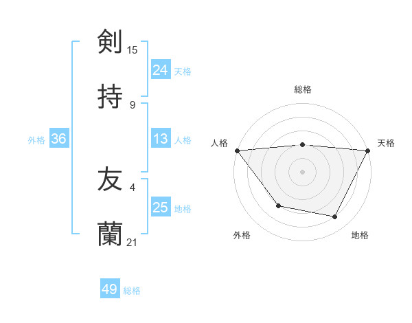 剣持 友蘭さんを姓名の画数から五運を鑑定
