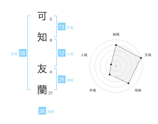 可知 友蘭さんの天格は13画の5点!
