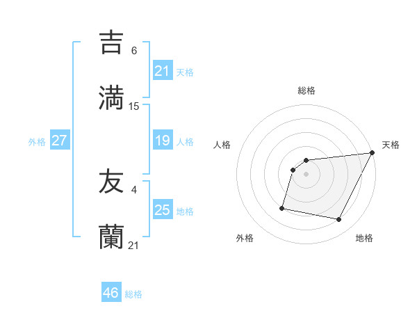 吉満 友蘭さんの天格は21画の5点!