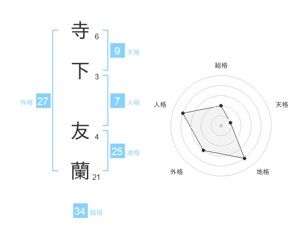 寺下 友蘭さんの総格は34画の2点!