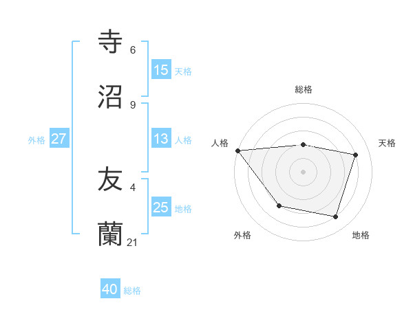 寺沼 友蘭さんの天格は15画の4点!