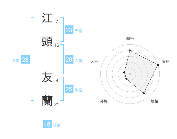 江頭 友蘭さんを姓名の画数から五運を鑑定