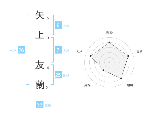矢上 友蘭さんの天格は8画の4点!