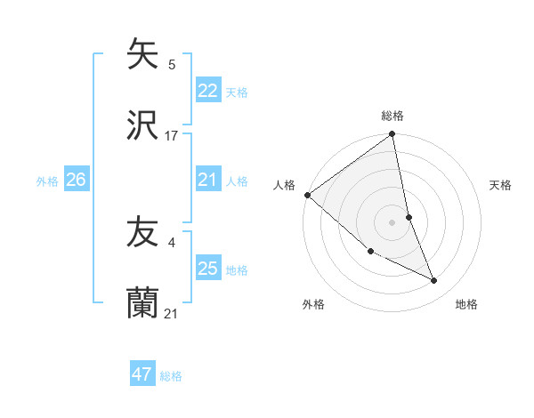 矢沢 友蘭さんを姓名の画数から五運を鑑定