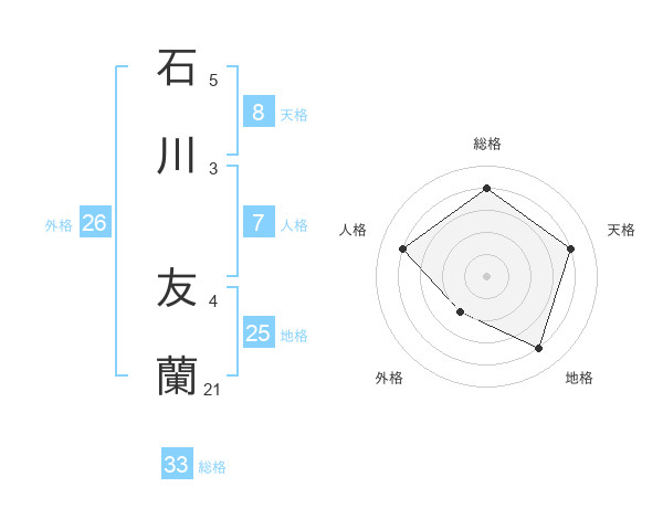 石川 友蘭さんを姓名の画数から五運を鑑定