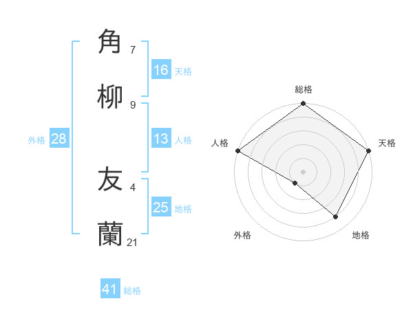 角柳 友蘭さんを姓名の画数から五運を鑑定