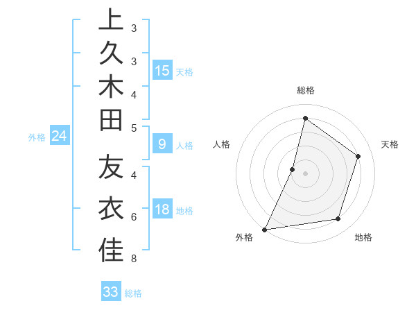 上久木田 友衣佳さんを姓名の画数から五運を鑑定