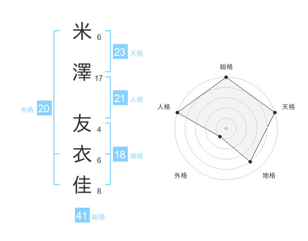 米澤 友衣佳さんを姓名の画数から五運を鑑定