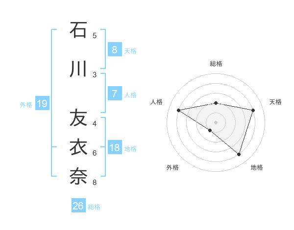 石川 友衣奈さんを姓名の画数から五運を鑑定