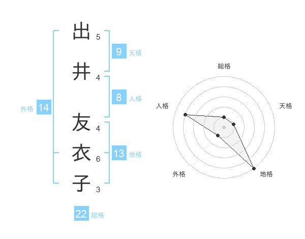 出井 友衣子さんの総格は22画の1点!