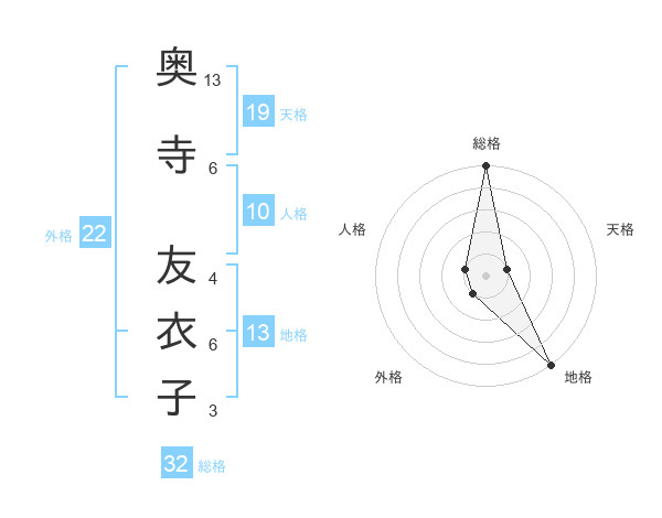 奥寺 友衣子さんの総格は32画の5点!