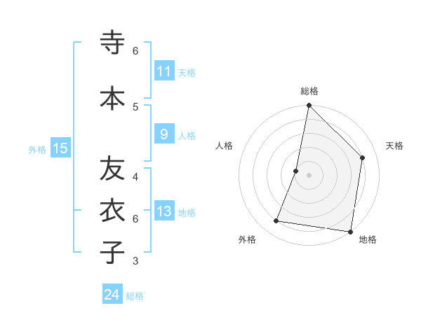 寺本 友衣子さんを姓名の画数から五運を鑑定