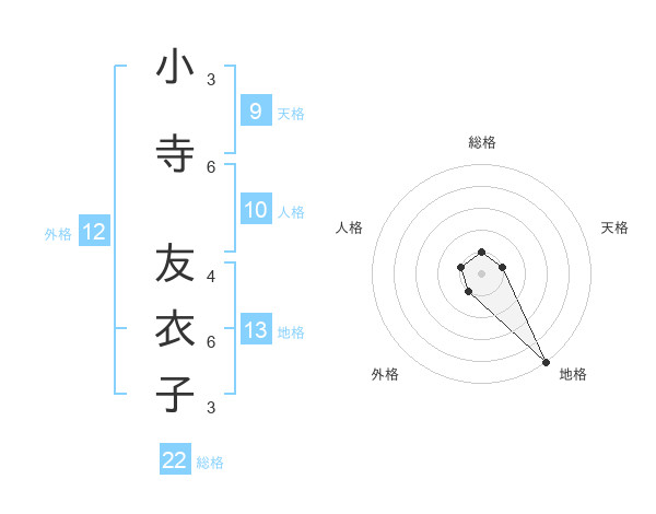 小寺 友衣子さんの総格は22画の1点!