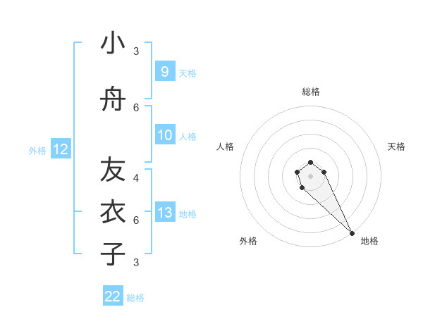 小舟 友衣子さんを姓名の画数から五運を鑑定