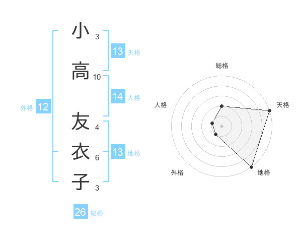 小高 友衣子さんを姓名の画数から五運を鑑定