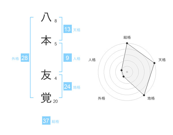 八本 友覚さんの総格は37画の5点!