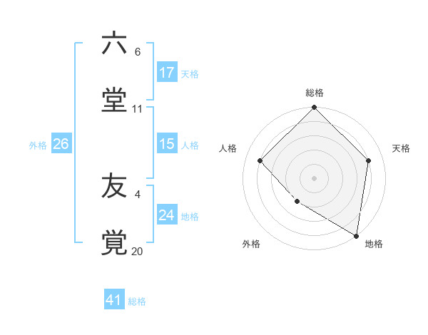六堂 友覚さんの総格は41画の5点!