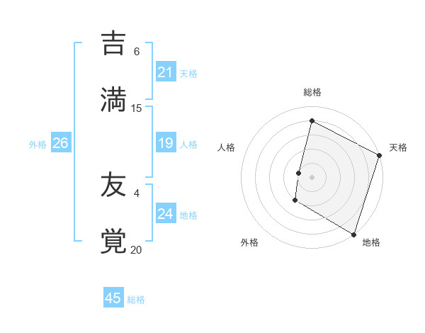 吉満 友覚さんを姓名の画数から五運を鑑定