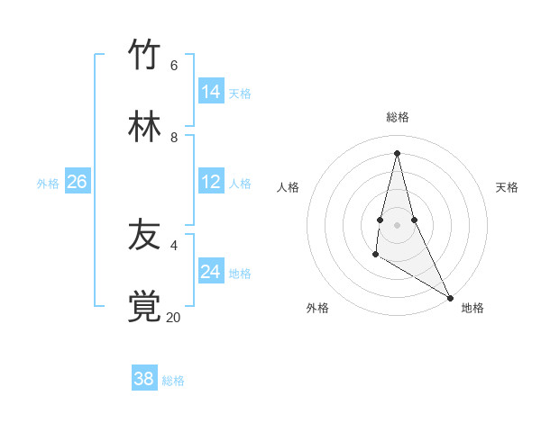 竹林 友覚さんの総格は38画の4点!