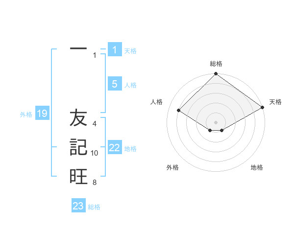 一 友記旺さんの総格は23画の5点!