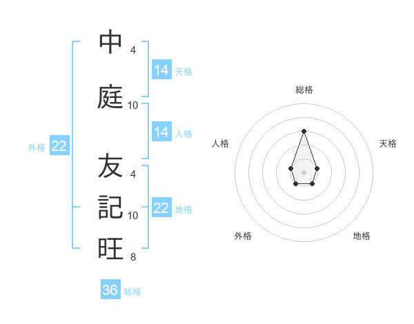 中庭 友記旺さんの外格は22画の1点!