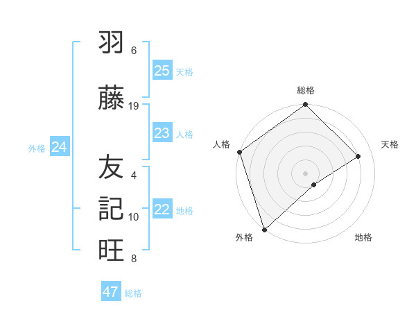 羽藤 友記旺さんの外格は24画の5点!