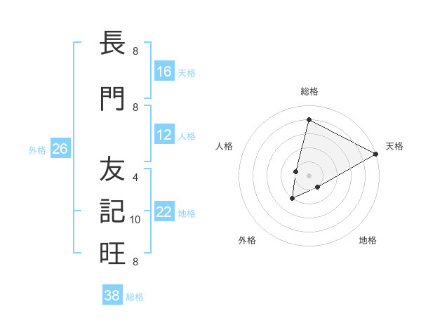 長門 友記旺さんの天格は16画の5点