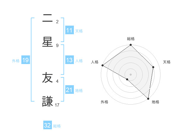 二星 友謙さんの総格は32画の5点!