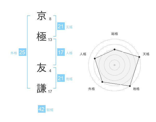 京極 友謙さんの総格は42画の3点!