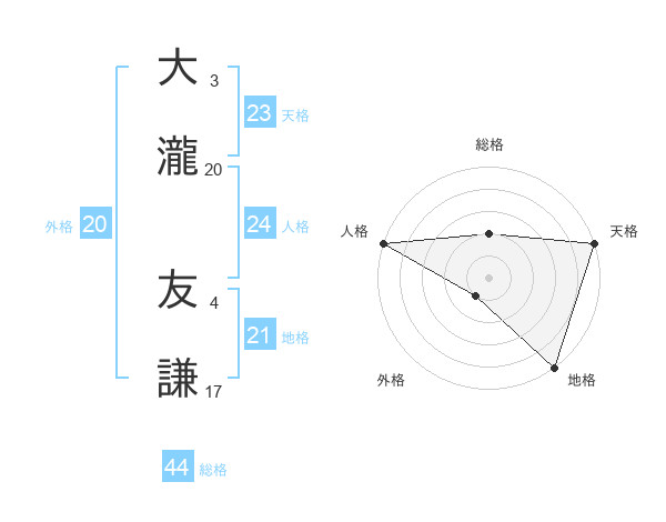 大瀧 友謙さんを姓名の画数から五運を鑑定